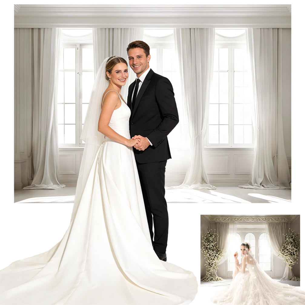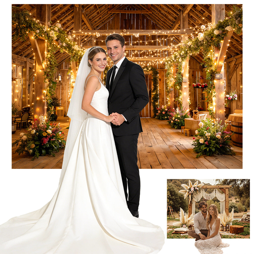 - 11 custom photo backdrop styles: choose from 10 stunning pre-designed backdrops: such as elegant white curtain, floral arch, rustic wooden door, vintage floral vine wall, and fairytale storybook, or create your own with a fully customized design using your personal image, adding a unique and personalized touch to your celebration, making it ideal for weddings, bridal showers, engagement parties, anniversaries, and more