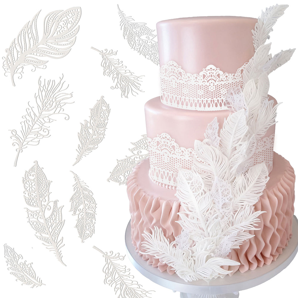 Ready to use lace wrap & borders for cake decoration ideas, includes 10 pre-made edible lace feathers/leaves per set, sizes approximately 2.16 × 0.94 inch – 5.9 × 2.04 inch, assorted shapes, for decorating cupcakes, cookies, cakes, macarons, cake pops, ice cream, and other desserts