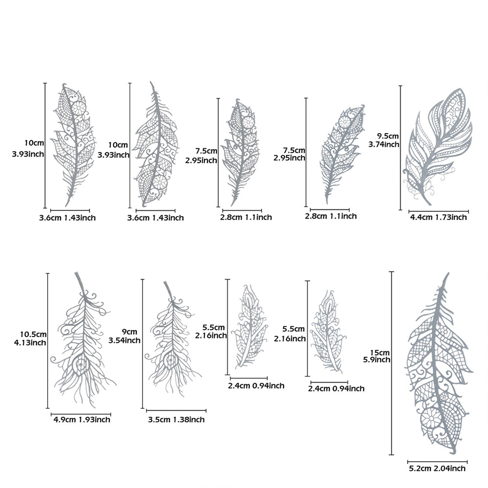 Dimensions (approximate): 10 pieces per set, sizes approximately 2.16 × 0.94 inch – 5.9 × 2.04 inch, assorted shapes