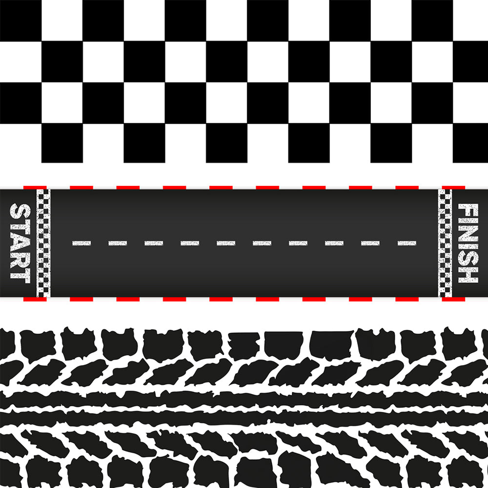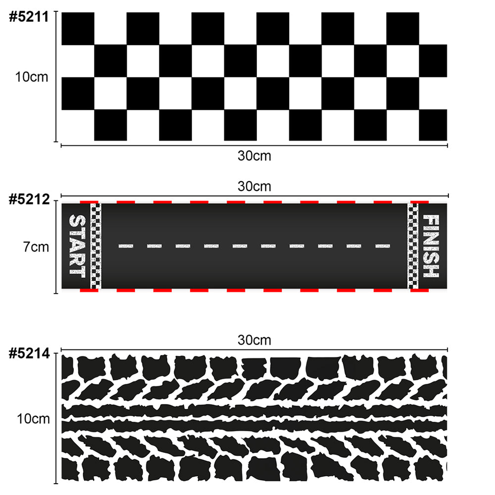 Random 1 style, size 10 × 30 cm (4 × 12 inches), available in white & black checkered flag, race track, or tire tread designs.